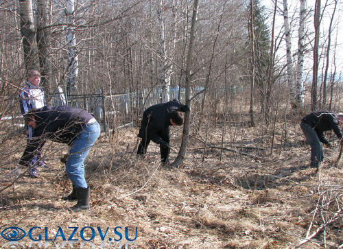 Подключились к данной благой инициативе и просто неравнодушные, к своему прошлому, жители нашего города. Не осталась в стороне и редакция портала glazov.su, наши друзья и знакомые, которые приняли участие в облагораживании территории в субботу 17 апреля.