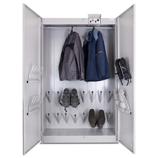 Такие шкафы помогают очень быстро высушить обувь и одежду как после интенсивных тренировок, так и после активной работы. При этом в каждом из названных мест может быть установлен сушильный шкаф определенной конструкции и мощности, отвечающий заданным требованиям эксплуатации. Современные сушильные шкафы для одежды чаще всего изготавливают из металла, при этом они оснащаются нагревателями горячего воздуха. Их мощность обычно составляет 1500-2000 кВт и может изменяться в зависимости от условий эксплуатации и размеров устройства. При этом обычно к таким шкафам можно подключить вытяжку, для этих целей шкафы специально оборудуют отверстиями.